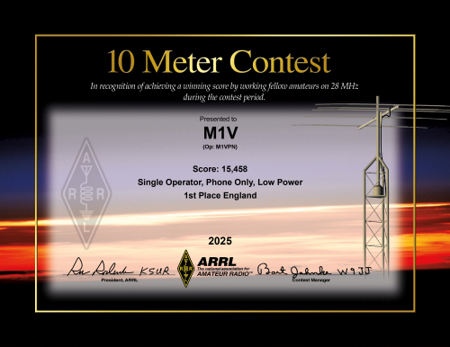 CQ WW Contest M1V, #1 in England, SOAB Low Power.