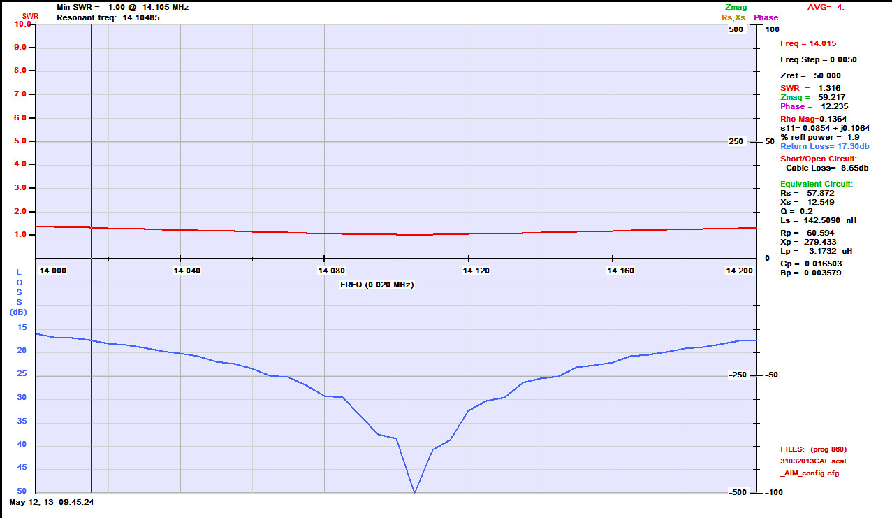 Plots generated by AIM 4170C Antenna Analyser - Supplied by Array Solutions.