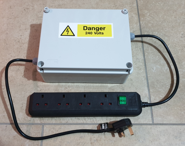 Picture of the Mains Filter, completed in a suitably sized IP65 enclosure